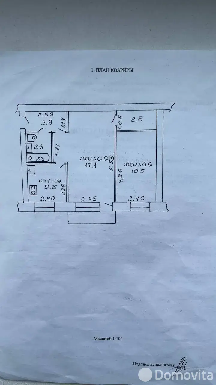 - Общая площадь квартиры составляет 41,6 кв.м., 2 изолированные комнаты 17,1 и 10,5 кв.м., кухня 5,6 кв.м., из зала есть выход на балкон, есть небольшая кладовая комната.