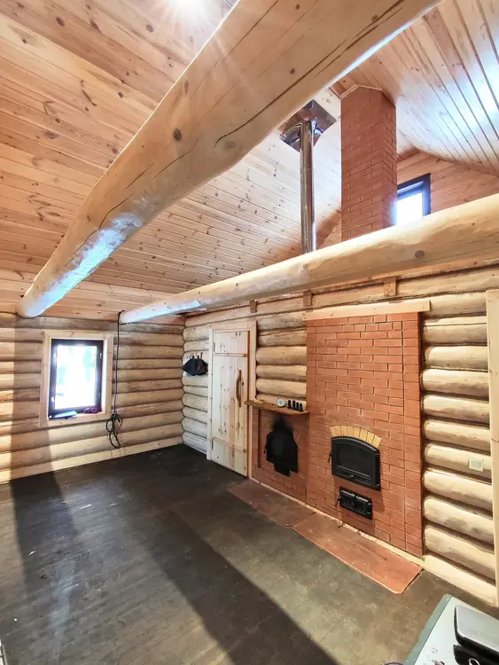 Идеальная внутренняя отделка деревом. Кухня со столешницей из керамогранита. Новая проводка под старину с керамическими выключателями и розетками (грамотное, продуманное разведение). Сигнализация, датчики задымления, пожарные извещатели.