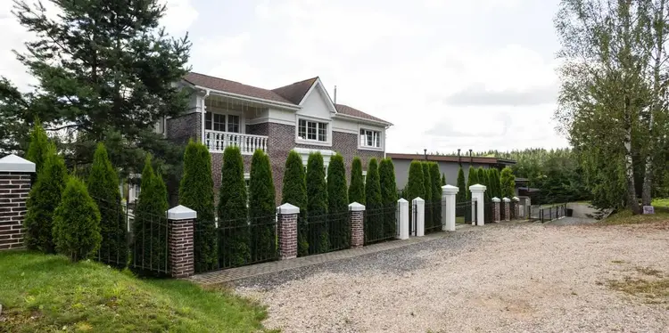 по периметру участка установлен «прозрачный» забор; возле дома волейбольная площадка.