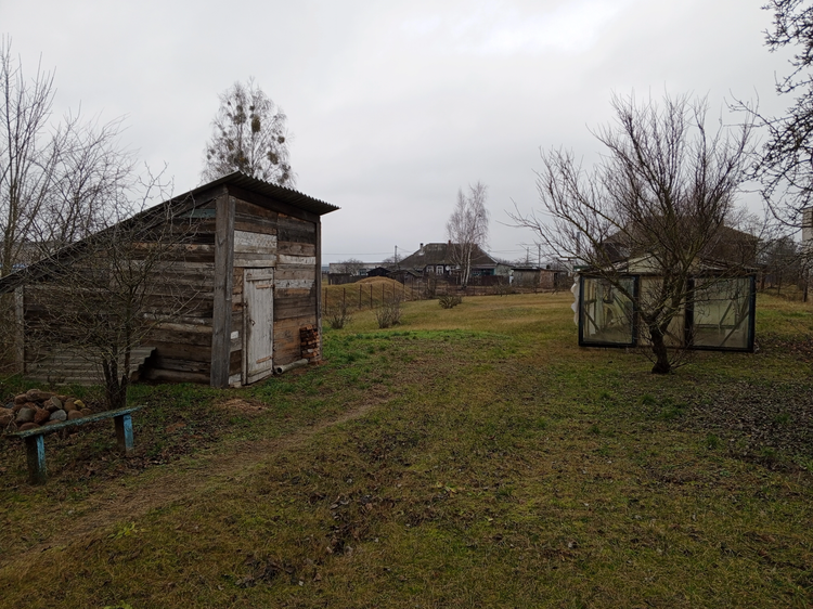 В кладовой есть небольшой погреб. На участке: гараж, подсобное помещение с погребом, теплица, колодец, уличный туалет. По периметру участка сетка-рабица, ворота из металлопрофиля. Высажен молодой яблоневый сад и др. плодовые деревья.