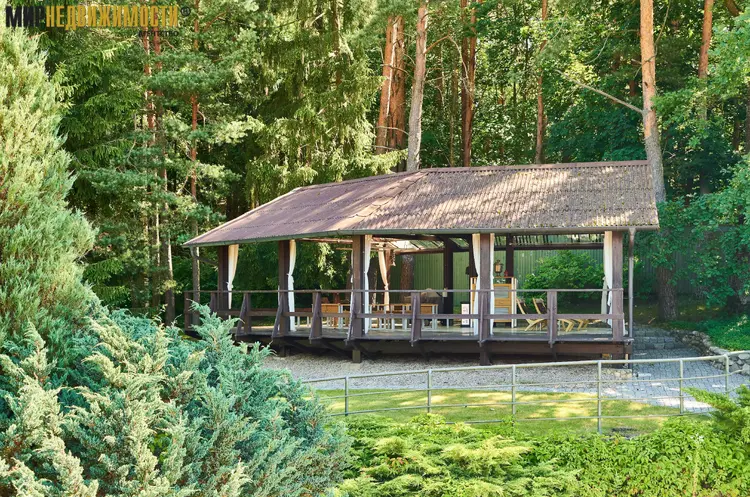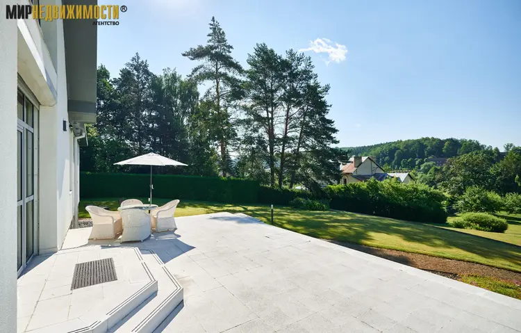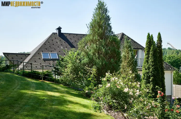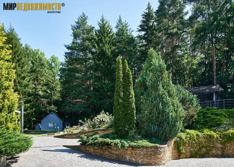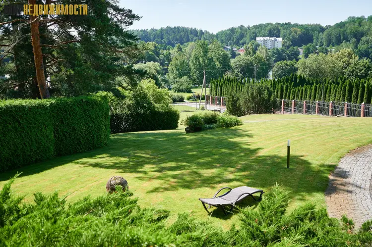 Территория: участок 0,4762 га. огорожен высоким металлическим забором, со стороны леса забор глухой с двумя калитками. Автоматические въездные ворота. Ландшафтный дизайн. Ухоженный декоративный и плодовый сад. Автоматическая система полива. На участке высажены туи, плодовые и хвойные деревья, другие многолетние и декоративные растения. Огромная деревянная пергола с панорамным видом, имеет инфракрасный обогрев, зона барбекю с газовым грилем Webster, удобная мебель. Уличное освещение Bega.