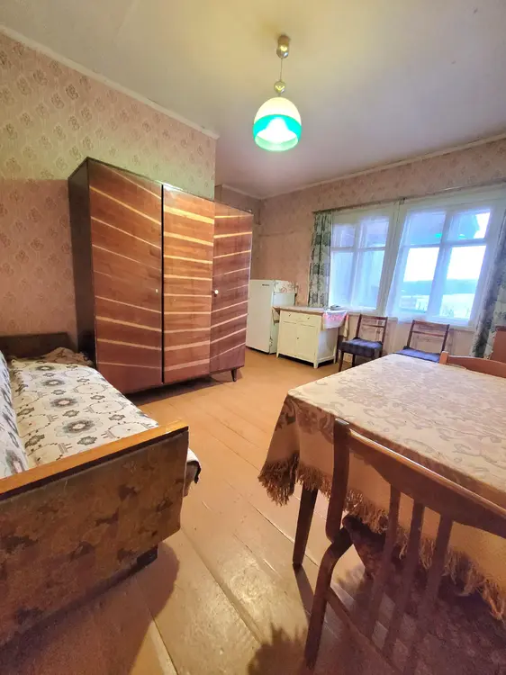 10 минут пешком до остановки общественного транспорта, продуктового магазина, пунктов выдачи Ozon, Wildberries, рядом лес, р. Усяжа, асфальт до самого дома. В квартире печное отопление, электричество, высота потолков 2.68 м., есть возможность подключить газовое отопление, воду. К квартире прилегает хороший приусадебный участок, а также есть участок для возделывания огорода.