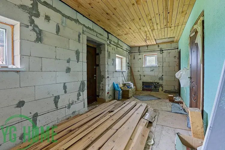 Дом построен с использованием высококачественных материалов. Фундамент - монолитная плита цокольного этажа, блоки ФБС, стены наружные - блоки газосиликатные с утеплением 10 см и законченным наружным фасадом, перекрытия первого этажа - плита перекрытия ж/б, второго-деревянные балки, межкомнатные перегородки из красного кирпича.