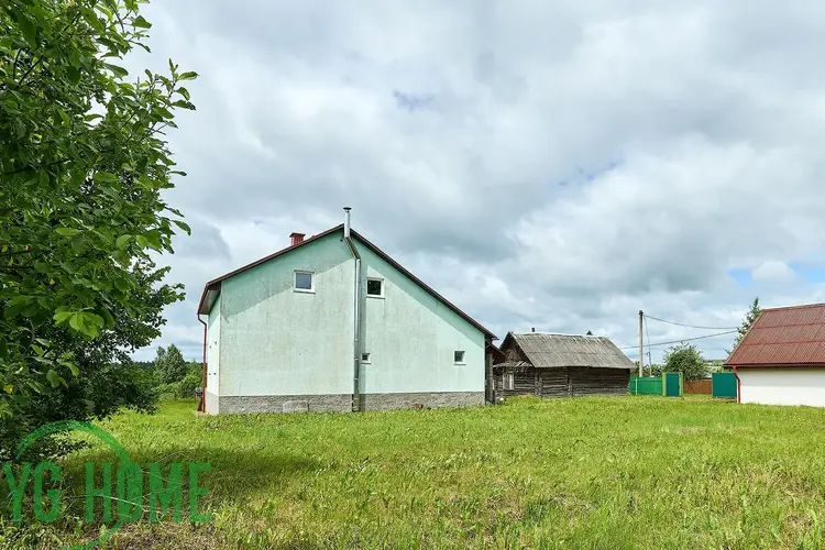 Дом расположен в жилой деревне. Площадь участка 25 соток в частной собственности, с трех сторон огорожен забором из металлопрофиля на бетонном основании, с одной стороны - сеткой-рабицей. На въезде на участок откатные ворота и калитка. Участок правильной формы с выложенными плиткой дорожками и площадкой под автомобиль, высажены плодово-ягодные деревья. Прямо за участком начинается лес, богатый грибами и ягодами. В 500 метрах озеро с отличным клевом.
