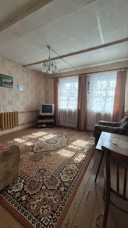Дом площадью 76 кв.м. (жилая - 55 кв.м.) построен из ш/бетона, крыша покрыта шифером. В доме есть свет, газовое отопление, а воду можно получить из колонки, расположенной рядом с домом. Участок ровный, площадью целых 25 соток, предоставляет простор для реализации ваших идей по ландшафтному дизайну и садоводству. На участке уже есть парник и хозяйственные постройки, что добавит удобства в ведении хозяйства.