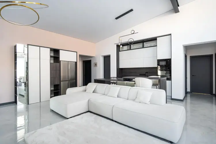 Дом площадью почти 200 м2 построен для себя с использованием высококлассных материалов: монолит и керамзитобетон, свайный фундамент. Современная архитектура, высокие потолки до 4,5 м в зоне гостиной, второй свет — много воздуха и пространства. Выглядит свежо, стильно и дорого.