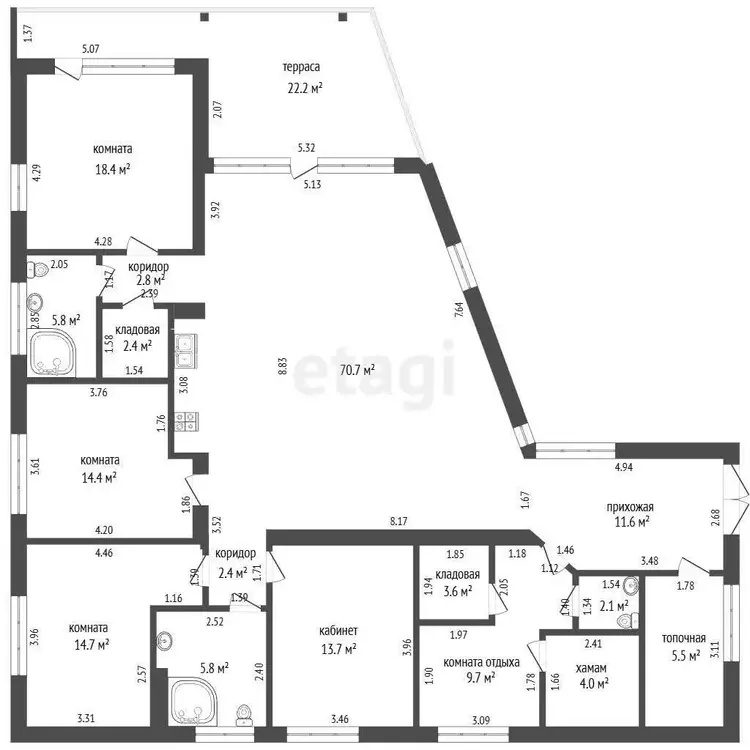 Продуманная планировка без «съедающих» коридоров и лишних помещений — только необходимые комнаты правильных размеров.