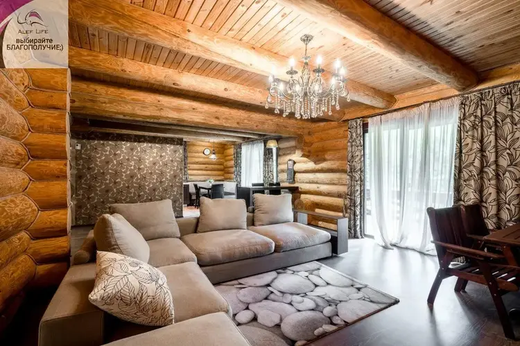 Дом полностью готов к проживанию. Стены и перекрытия из кругляка сосны 400 мм, прошедшего усадку и всю необходимую обработку для эксплуатации. С трех сторон окружен лесом: сосны, дубы и орешники.