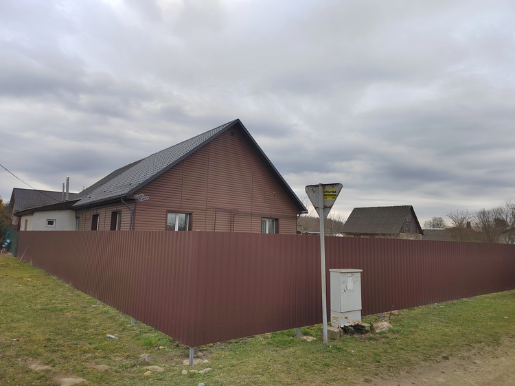 Въезд по ухоженной дороге на территорию дома. Ворота – автомат. В деревне улица Центральная асфальтирована практически до самого дома.