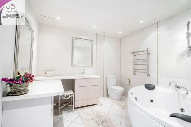 2 этажа, на каждом этаже есть санузел с душевой кабиной или ванной, есть отдельное помещение для стиральной машины. На первом этаже - джакузи. В доме четыре изолированные просторные комнаты, большая кухня-столовая почти на 50 м2.