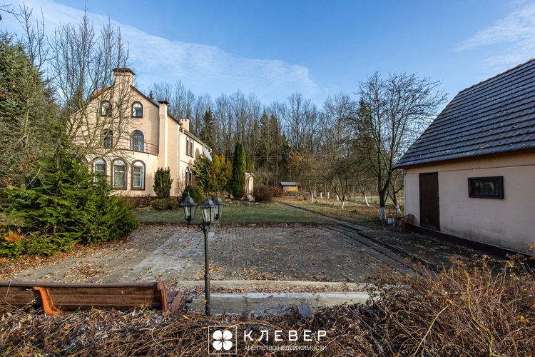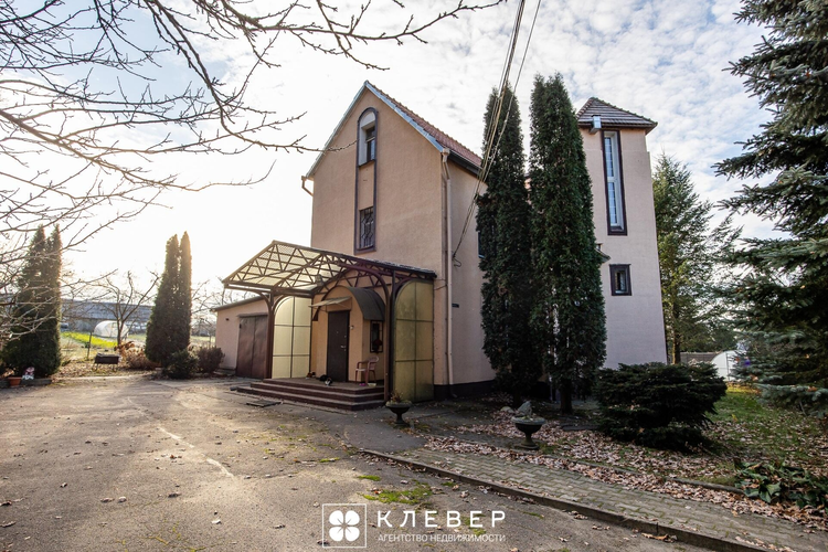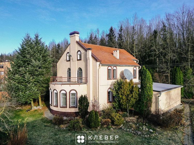К дому пристроен гараж площадью 57 кв. м на две машины со смотровой ямой. Высота ворот 2,8 м. Также в доме есть сауна, бассейн, мастерская, игровые комнаты с бильярдом и настольным теннисом, терраса