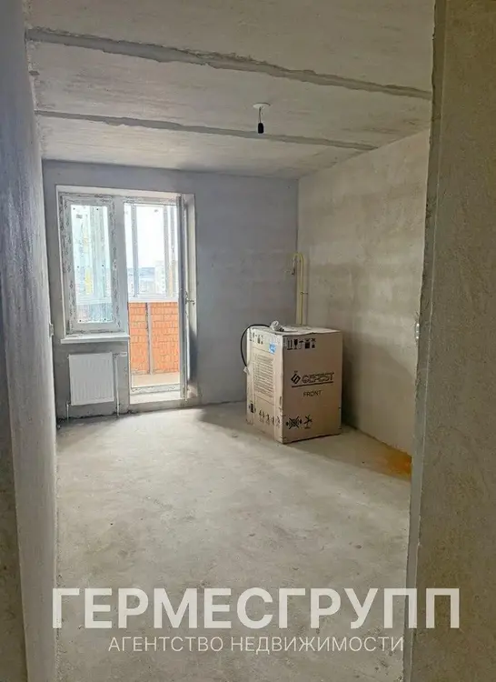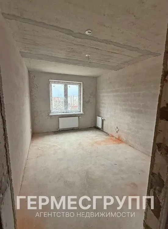 Квартира без отделки, на полу стяжка , стены оштукатурены.Окна ПВХ, входная дверь металлическая, санузел раздельный, комнаты выходят на обе стороны, лоджия остекленная.