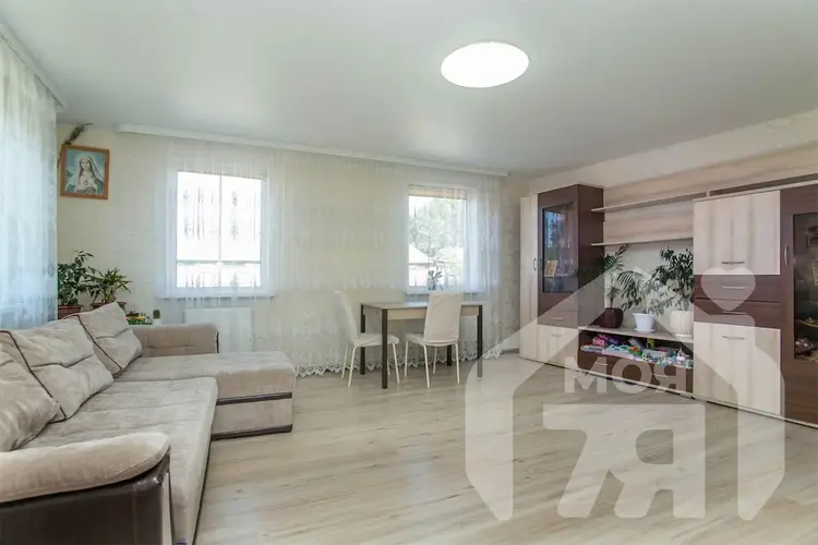- Дом построен из бревна и обшит сайдингом, сочетая прочность конструкции и аккуратный внешний вид. На участке есть хозяйственные постройки, беседка и теплица, что позволяет удобно хранить вещи, заниматься садоводством и отдыхать на свежем воздухе.