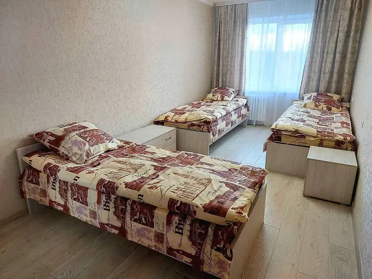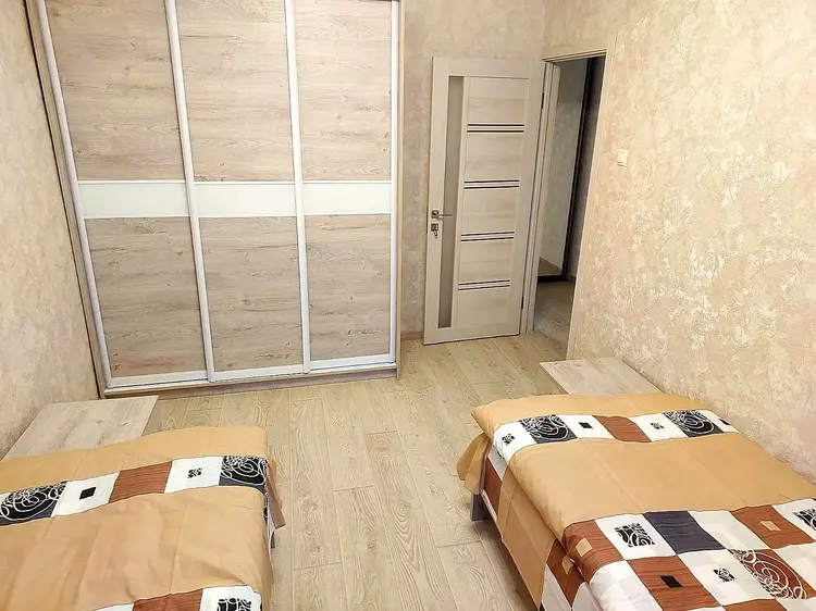 В комнатах имеется: двуспальная кровать, 1 диван-кровать (двуспальное место), 5 полуторных кроватей (). Сан/узел — раздельный; ванна; стиральная машина, сушилка для белья; кухня с выходом на лоджию, микроволновая печь, столовые приборы и посуда, электрочайник, холодильник, соль, сахар, специи, фен. В шаговой доступности кафе, бесплатная парковка, парк, супермаркеты «сити молл», «евроопт», «соседи» и другие магазины, торговые ряды, мини-рынок, банки, банкоматы, спорткомплексы, стадион, бассейн и др.