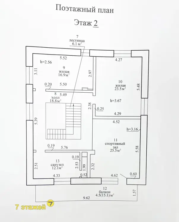 На 2 этаже расположены 2 просторные спальни, а также комната площадью 25.5 м2. возможно под спортзал, просторный санузел 13 м2, а также балкон площадью 15,1 м2. Высота потолков от 2,55м. до 3,7м. Есть возможность оборудовать комнату на мансардном этаже.