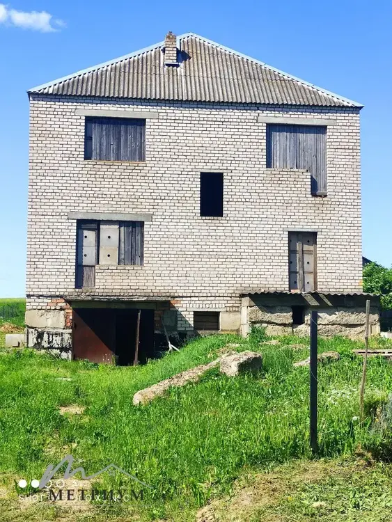 Вашему вниманию, предлагаем вариант для тех, кто не готов покупать полностью готовый дом с архитектурными решениями и дизайном предыдущих хозяев. НЗКС или простыми словами “недострой” это костяк дома, который можно обыграть по-своему, сделать расположение спален, санузлов и прочих помещений по своему усмотрению. Дом представляет собой четырехуровневую кирпичную коробку, с подвальным помещением, гаражом, а также полноценными двумя жилыми этажами и мансардой. Между всеми этажами ЖБ плиты, потолки высокие, более 3-х метров. Соответственно, вальмовую крышу можно сделать двускатной, односкатной или вообще плоской. Предоставляется возможность убрать или даже добавить еще один этаж, балкон или пристройку. К дому подведен газ, вода центральная по улице, возле участка по новым нормам установлен электрический счетчик, оптоволокно Белтелеком. Участок ровный, без хозяйственных построек, огородов и прочих нагромождений, помимо самого дома. Уклон в сторону улицы, при желании можно сделать даже модное ныне террасирование участка. Вид открывается отличный, на поле и лес.