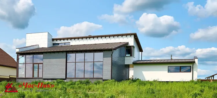 -Стены кирпичные с утеплением и вентфасадом из алюминия и лиственницы;
