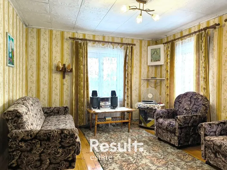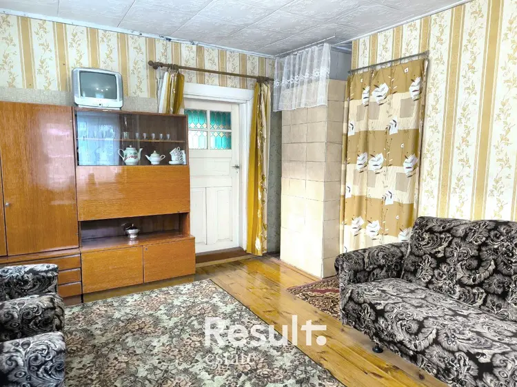 Крепкие деревянные полы, потолки высокие, стены оклеены обоями, с кровлей полный порядок.