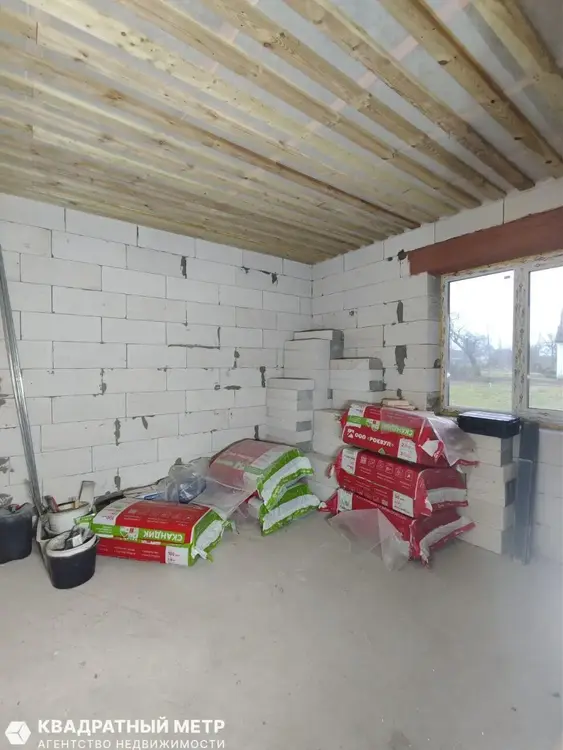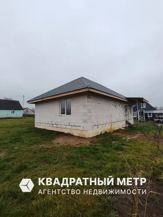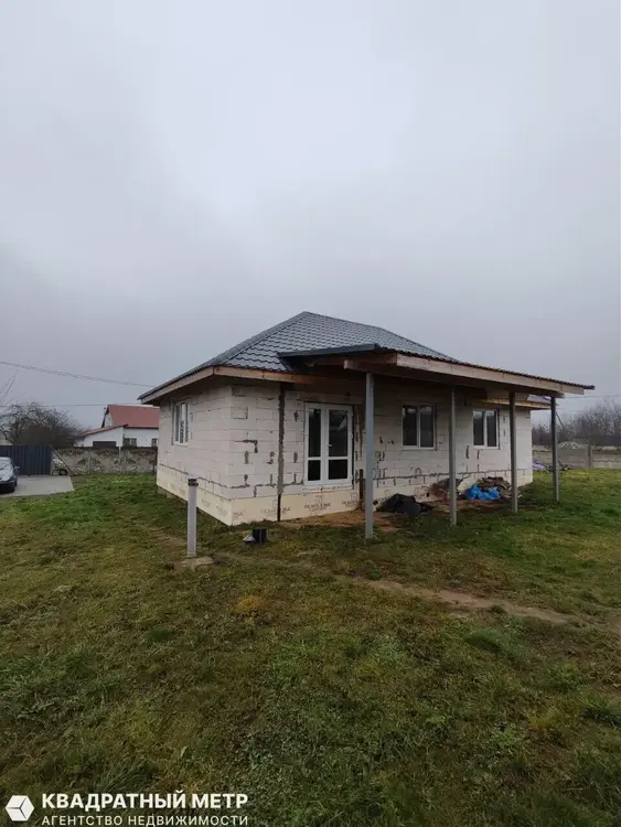 Одноэтажный дом из силикатных блоков,с возможностью сделать помещение на мансарде, крыша- вальмовая, материал -металочерепица, фундамент - плита,залит монолитный подвал. Отведено место под террасу.Огорожен со всех сторон.Имеется 2 въезда с воротами и калиткой.Обустроено парковочное место для автомобилей.