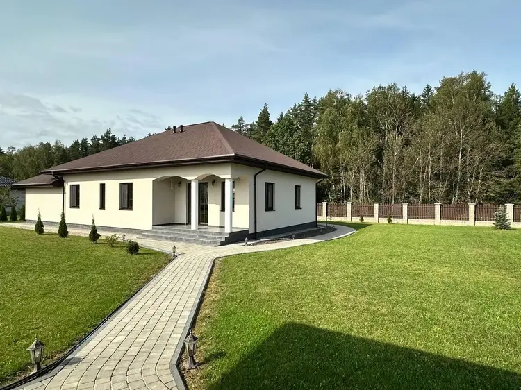 Выполнена наружная подсветка дома. Дом построен с разработкой проекта в соответствии с законодательными нормами.
