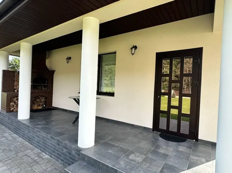 - гостевой дом, в котором есть комната отдыха с камином и мягкой мебелью, оборудованная кухня, санузел и самое главное – отличная сауна, душ и традиционная кадка с холодной водой. Отделка натуральное дерево, плитка, теплый пол. Снаружи терраса с барбекю зоной.