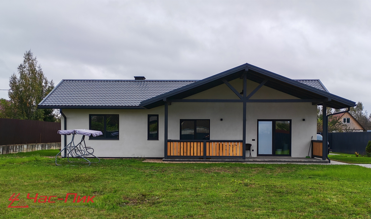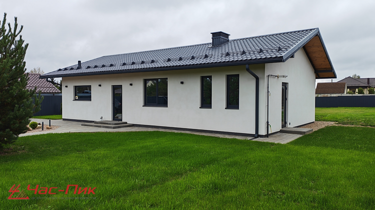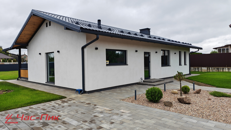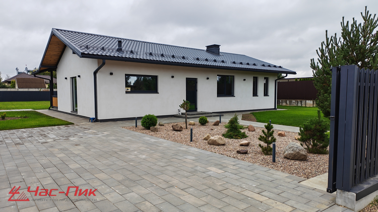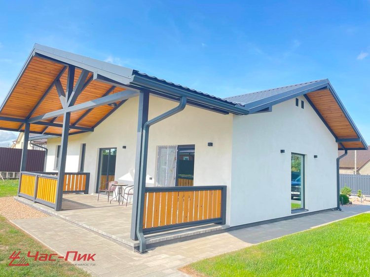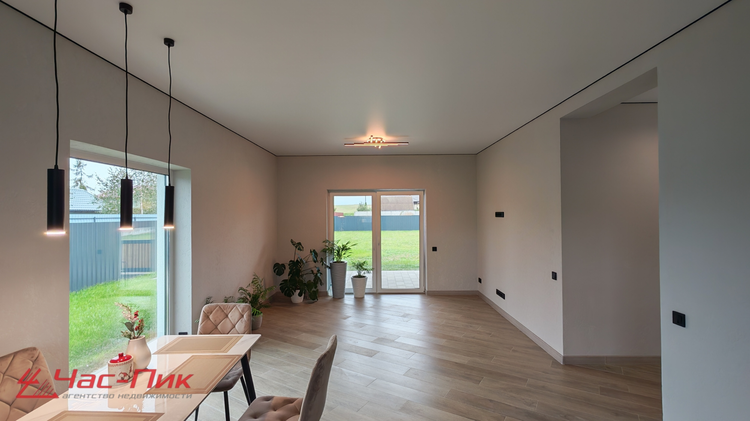 Дом одноэтажный, современной планировки: просторная кухня-гостиная 30,6 м кв. с выходом на террасу, три жилых комнаты, в одной из спален -тоже выход на террасу, два санузла, гардеробная, отдельная котельная.