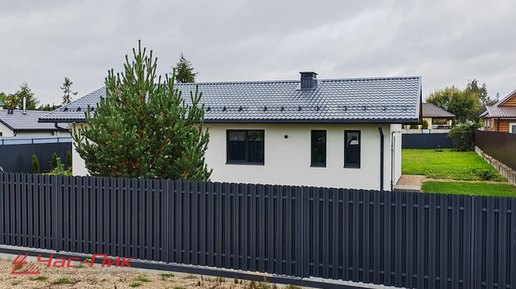 Участок прямоугольной формы, огорожен со всех сторон, откатные ворота с электроприводом и распашные ворота на заднем дворе. Имеется зона парковки и зона барбекю, а также достаточно места на участке для постройки бани, беседки и т.д.