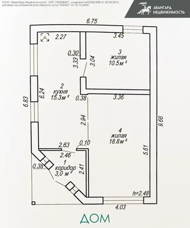 Общая площадь дома 47,6 м2. При входе небольшой коридор 3,0 м2, две изолированные жилые комнаты 18,8 м2 и 10,5 м2, в них уже есть необходимая мебель и техника. В кухне 15,3 м2 вы также найдете кухонный гарнитур, холодильник, газовую плиту и стиральную машину. Санузел с душевой кабиной. По всему дому установлены стеклопакеты, на полу лежит линолеум.