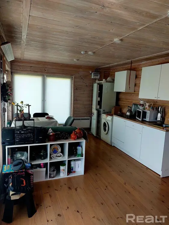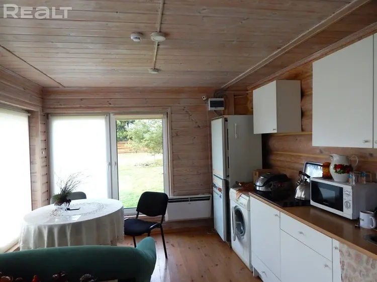 Дом подходит как для круглогодичного проживания, так и для сезонного отдыха. Расположен в поселке Комаровка, в 38 км от Минска.