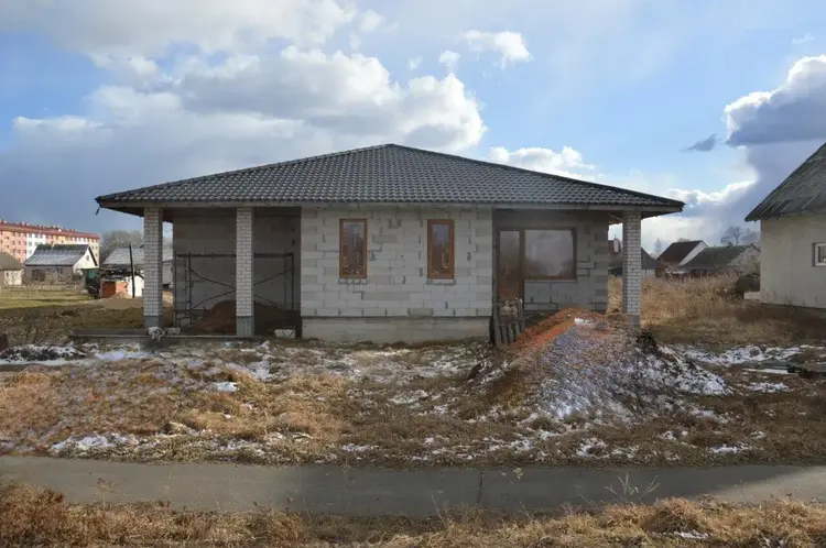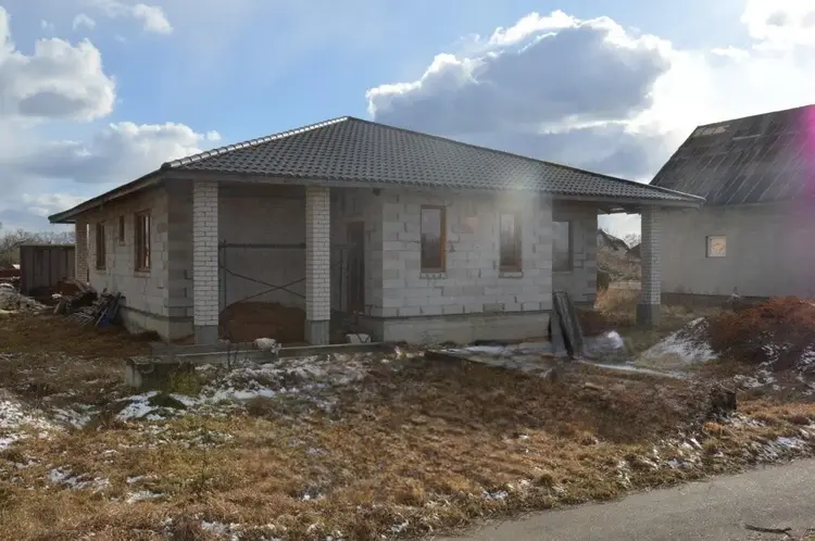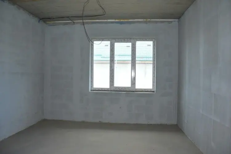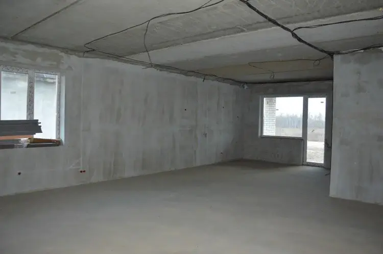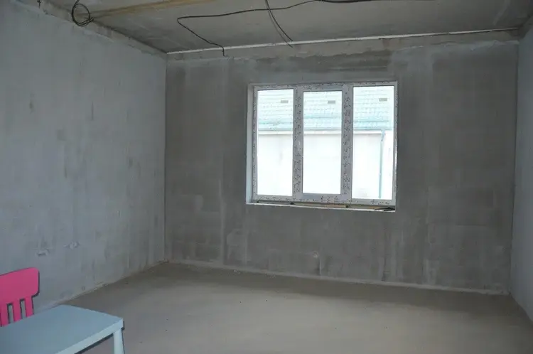 Внутренние стены оштукатерены под маяки (далее они были удалены); пол - утеплен пеноплексом 50 мм - далее смонтирована чистовая стяжка; разведена вся необходимая проводка по дому - включающая в себя: освещение, розетки, точечные светильники, проходной свет, под радиаторы, проведён кабель для плиты и духовой печи - предусмотрена каждая мелочь, которая нужна для комфортной жизни в доме.