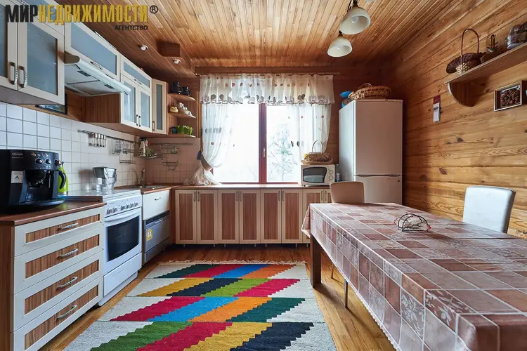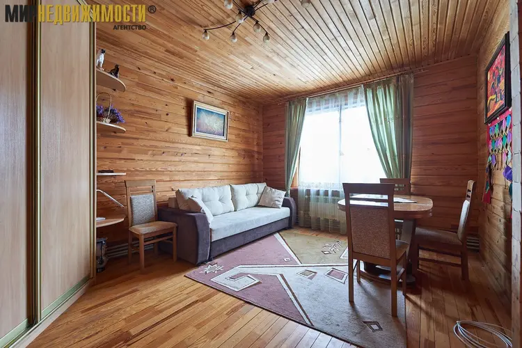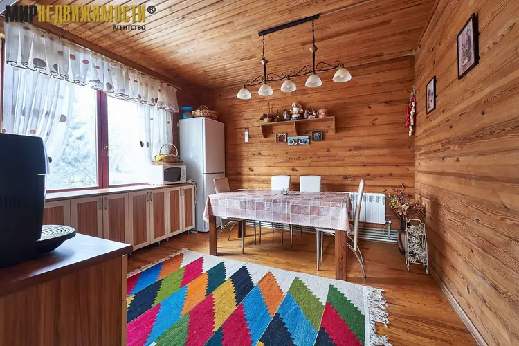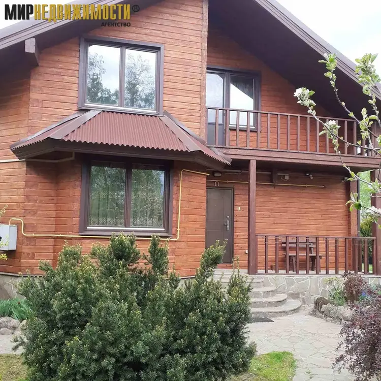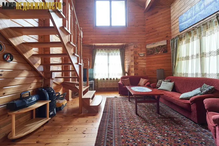 Молодечненское направление, 10 км от г. Заславль. Дом общей площадью 135.6 м2 (2013 г.п.), два уровня, красивая лестница из ясеня, второй свет (6 метров), французский камин, 5 жилых комнат, кухня 14.0 м2, 2 с/у, топочная, свет, интернет, телефон, газовое отопление, водопровод, канализация, видеонаблюдение. Огорожен живой изгородью, соседи с круглогодичным проживанием. Хозяйственный комплекс из клееного бруса, состоящий из гаража 30.3 м2, сарая, бани 94 м2. Красивый ландшафтный дизайн, водоем перед домом, стильная беседка 22 м2 из канадского дуба, печь-барбекю.
