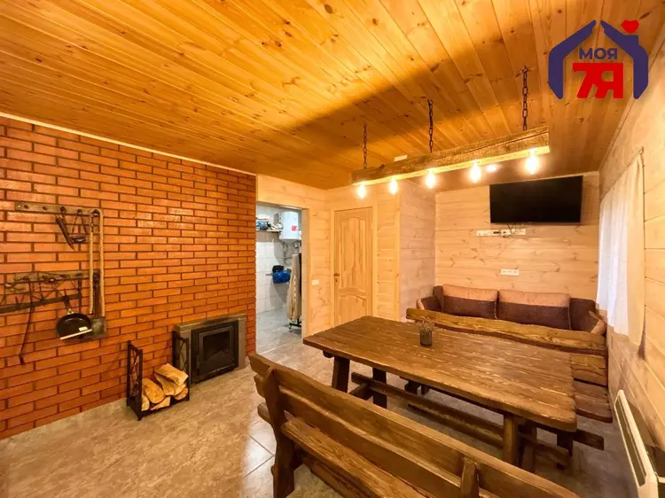 -На участке, площадью 15,12 соток, создано пространство для отдыха и хозяйства. Всё огорожено по периметру, создавая уют и безопасность. Здесь есть баня, отдельная зона для барбекю, навес для парковки автомобиля и дополнительные хозпостройки, включая курятник.