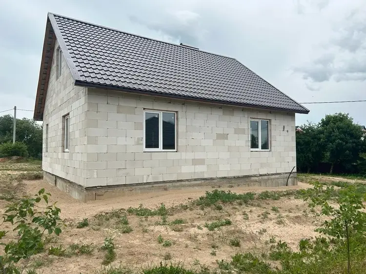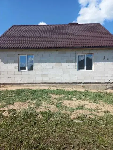 качественный. Крыша- металлочерепица. На первом этаже предусмотрены 3 большие комнаты: кухня, гостиная, спальня. Высокие потолки, много света и воздуха. Установлены качественные двух-камерные стеклопакеты. На втором мансардном этаже свободное пространство, вы можете оборудовать его по своему усмотрению. На первом этаже предусмотрена ванная комната с сан узлом, смонтированы все выходы. Так же на участке находится дом из сруба под баню.