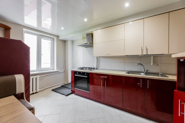 В основных комнатах высота потолков достигает 2,86 м. Минимальная высота в кухне = 2,42 м.