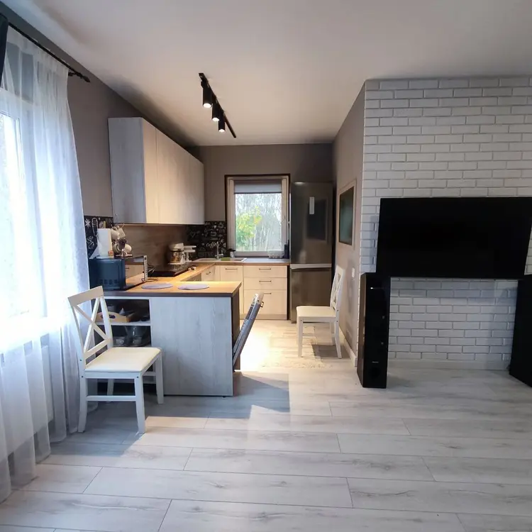 В живописном месте продаётся каркасный жилой дом в д.Панюшковичи (10 км от Бобруйска, 15 мин. езды от центра). Площадь по СНБ, 80 м2, жилая-18,8 м2, кухня -26,9 м2, терраса-10,2 м2. Водопровод -скважина, отопление- твёрдотопливный котёл. имеется возможность установить электроотопление, так как на участок заведено электричество на 380 Вт. Канализация - местная; водоснабжение - скважина. Продаётся со всей мебелью и техникой. На участке в 25 соток расположены: гараж 84 м2 на 2 машины с автоматическими воротами, беседка, по периметру высажены туи и растут берёзы. Дом и гараж обшиты сайдингом. С лицевой стороны участка установлен кованый забор. Вблизи дома располагается лес с грибными и ягодными местами. Прекрасное место для жизни и отдыха. К дому имеются широкие подъездные пути.