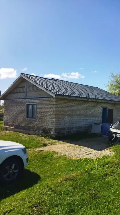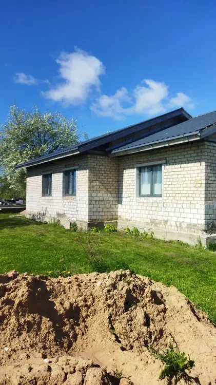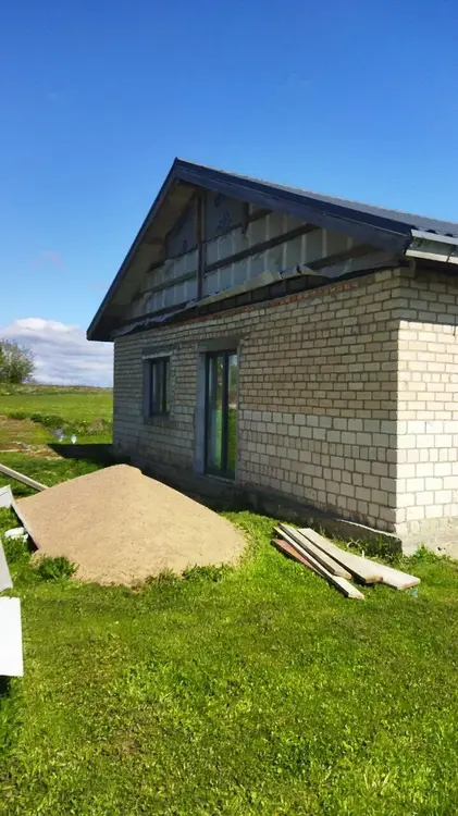 Залит новый армпояс, новая кровля металл черепица премиум, утеплен потолок, стены не требуют утепления толщина 35-40см, произведена отсыпка и трамбовка, сделана черновая стяжка по всему дому, новые стеклопакеты Ral 7044 графит, производитель Veko premium. Сделана печь, камин - готовить можно в духовом шкафу. Есть все тех. Условия, проведено электричество, сделан септик, водоснабжение центральное. Отопление планировалось электро, льготный тариф на электричество. Участок 25 соток, максимально все вывезли, остались кирпичи, шифер, доски новые, все отдаем в нагрузку. Есть забор частично. 2 яблони и груша, сливы