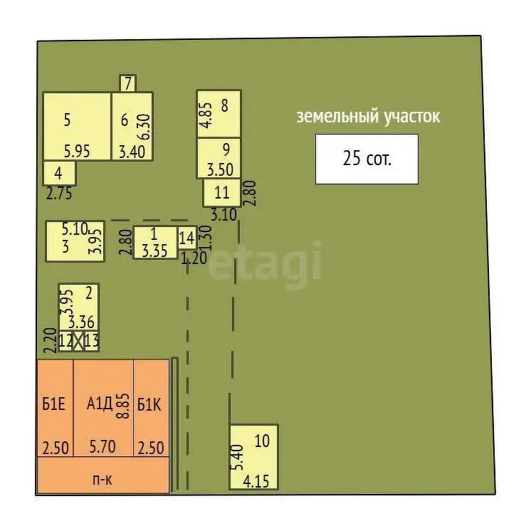 Основной участок — 25 соток в частной собственности. На территории расположены сараи, гараж, плодовые деревья и кустарники. Асфальтированная дорога подходит прямо к дому. Спокойная широкая улица и доброжелательные соседи создают комфортные условия для жизни.