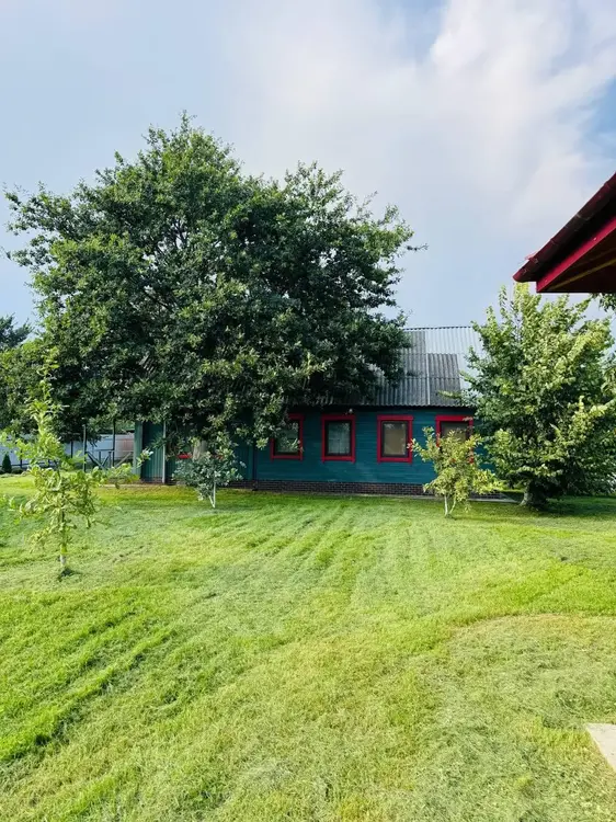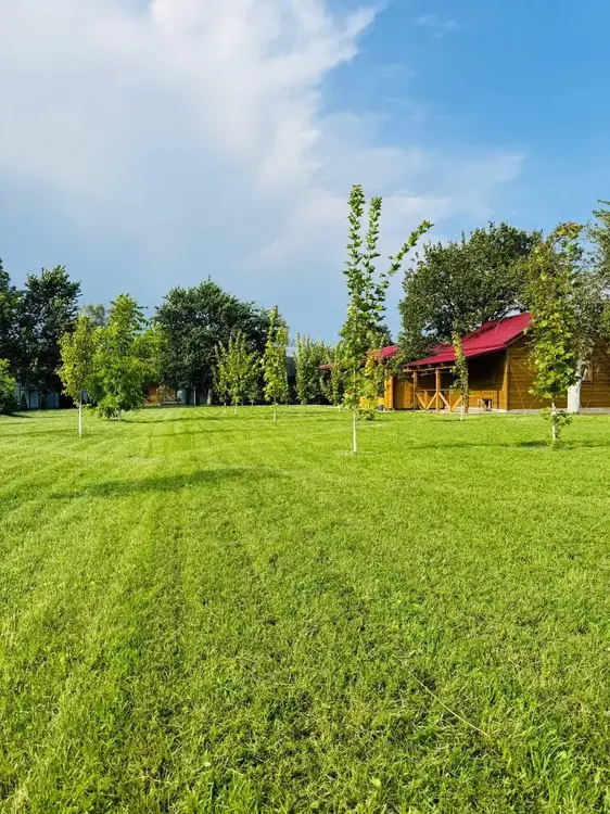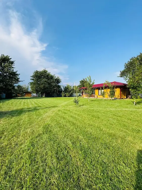 Участок 25 соток, ровный, прямоугольной формы. Огорожен забор металлопрофиль, калитка + откатные ворота на пульте управления. Высажен газон, около 20 плодовых деревьев (персик, инжир, сливы, яблони, грецкий орех).