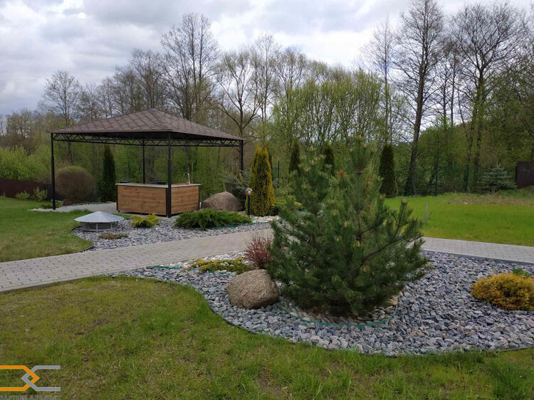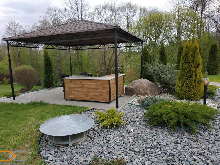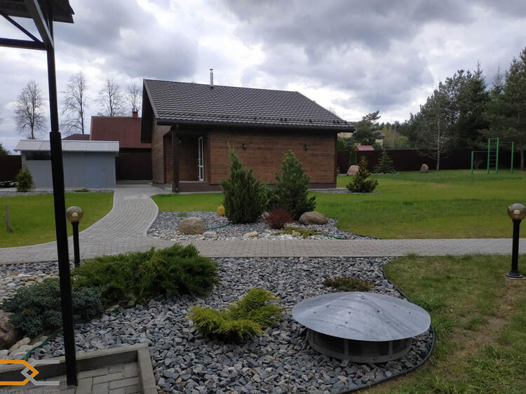 - Вода со скважины подается к дому, бане и к зоне барбекю.