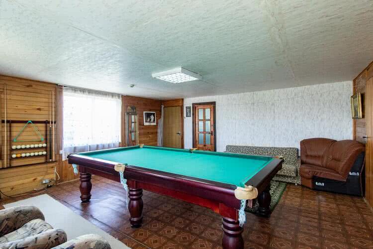 На 2-м мансардном этаже есть еще две компактные спальни. А также просторная светлая комната с бильярдным столом, где можно прекрасно провести время с друзьями или в кругу семьи. Мансарда не отапливается, но в одной из комнат есть действующий камин, который способен обогреть пространство.