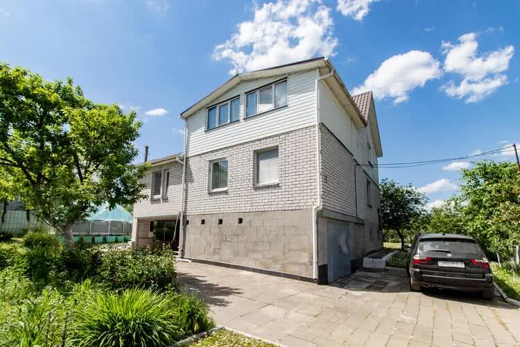 Дом построен из бруса 15 см, пристроена кухня из блоков г/с, затем полностью обложен белым кирпичом. Деревянные перекрытия. Фундамент блоки ФБС, снаружи отделка декоративной плиткой. Крыша металло-черепица, утеплена, подшита, установлена ливневая система. Отмостка по периметру дома. Придомовая территория выложена уличной плиткой.