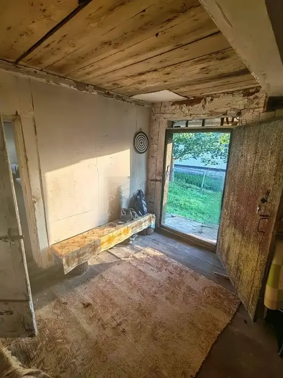 Описание дома : одноуровневый деревянный дом 1962г.п, общая площадь 33.9 кв.м, жилая 28 кв.м, две раздельных жилых комнат, кухня, веранда. Входная дверь деревянная, межкомнатные – деревянные, окна деревянные, пол - доска пола. Отделка обои.