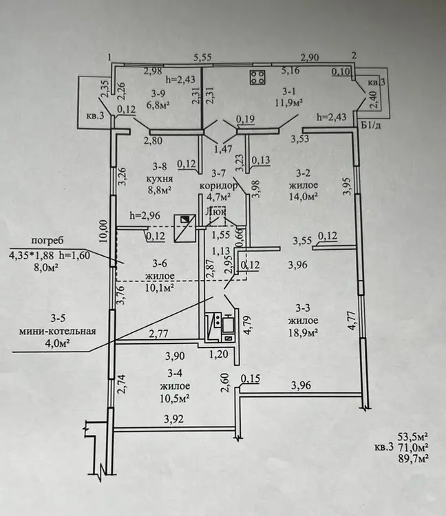 Продаётся часть жилого дома (выделенная квартира) в центре города по улице Ленинградская. Общая площадь по СНБ 89,7 м², общая площадь жилого помещения 71,0 м², жилая 53,5 м². 4 жилые комнаты. Два входа с разных сторон, при необходимости можно разделить на 2 отдельных жилья, закрыв всего одну дверь. Дом из бруса, на крыше - жесть, окна деревянные. Отопление - твердотопливный котёл, батареи разведены в жилых комнатах, есть печь. Вода центральная (холодная), канализация местная, газ привозной в баллонах, идёт по улице. Общая площадь участка 0,1498 га. Огорожен, отдельный вход от соседей, есть заезд для авто. Подъезд асфальтирован. Дом находится в тупике, нет шума от дороги.