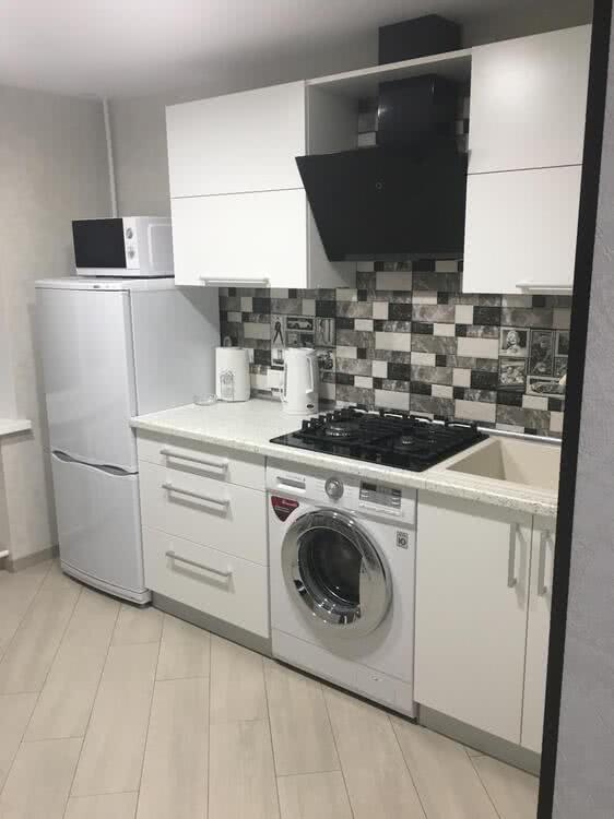 Кухня выполнена в черно-белых тонах и оснащена доводчиками Blum,чтобы шум хлопающих дверей не мешал Вашему отдыху. В квартире всегда есть чай,кофе,сахар. А также жидкий гель для стиральной машины и шампунь,жидкое мыло и гель для душа. Документы командировачным предоставляются. Выселение в 12.00, заселение в 14.00(либо время оговаривается заранее как Вам удобно). В