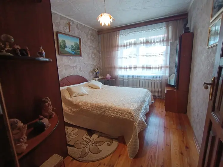 Продается трёхкомнатная квартира в центральной части города, ул. Куликова, д. 24. Квартира расположена на третьем этаже 5-этажного кирпичного дома 1981 года постройки. Общая площадь по СНБ 67,8 м², жилая 39,3 м², кухня 14,3 м². Высота потолка 2,50 м. Входная дверь - металлическая, межкомнатные двери - массив, установлены окна ПВХ. Потолок натяжной и сайдинг. На стенах обои, пол - деревянная окрашенная доска. В кухне и санузле - плитка. Перепланировка узаконена, большая вместительная лоджия. Возможна продажа с мебелью по согласованию. Рассматриваем продажу или обмен на двухкомнатную квартиру (не "Альбрехтово", не Западный микрорайон), с доплатой, не выше 2-3 этажа, либо дом с лифтом (кроме крайнего этажа). Чистый, аккуратный подъезд. Зеленый двор, парковка. Отличное расположение - набережная, Городской парк, кафе, магазины. Отличная транспортная развязка.