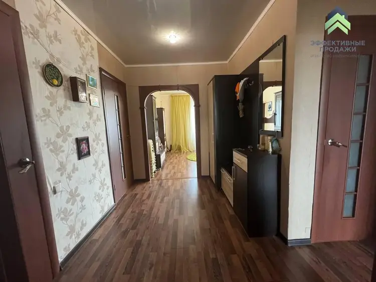 Во всех комнатах окна ПВХ, на полу - ламинат, натяжные потолки, хорошие межкомнатные двери. В прихожей оборудована функциональная гардеробная.