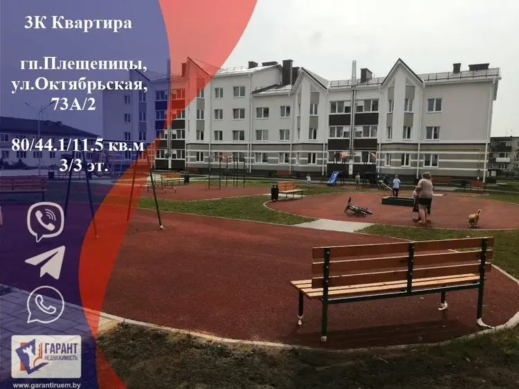 Продаётся трехкомнатная квартира в гп. Плещеницы 52.2 км от МКАД) без отделки.