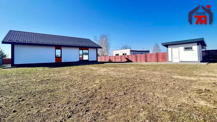 Современный одноэтажный дом из газосиликатных блоков, площадью 98,3 кв.м на участке 10 соток с надёжным фундаментом, современными инженерными системами и теплыми полами — готов к чистовой отделке.