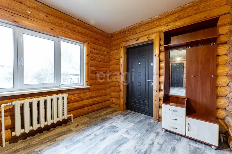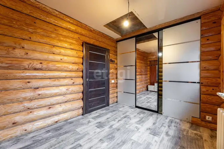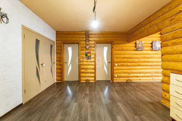 Материал дома – калиброванное бревно. Столчатый фундамент (46 свай) с ростверком (верхней лентой). Глубина столба 1,8м. Внутри сделан качественный ремонт. Отопление газовое. Скрытая электрика разведена в металлическом кожухе. На окнах стеклопакеты. На полу уложен качественный немецкий ламинат.