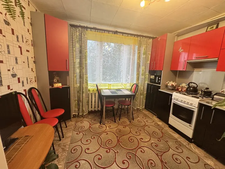 Всего в 5 минутах от Витебска. Общая площадь квартиры — 35,99 м², жилая — 18,64 м², кухня — 9,75 м². Квартира находится на первом этаже трехэтажного панельного дома, светлая и аккуратная, готова к заселению. В продаже остается часть мебели: кухонный гарнитур, шкаф в прихожей и стенка в комнате.